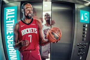 本场比赛截至发稿,杜兰特已经砍下27分,他的生涯总得分就此超越乔丹,升至NBA历史第五位!