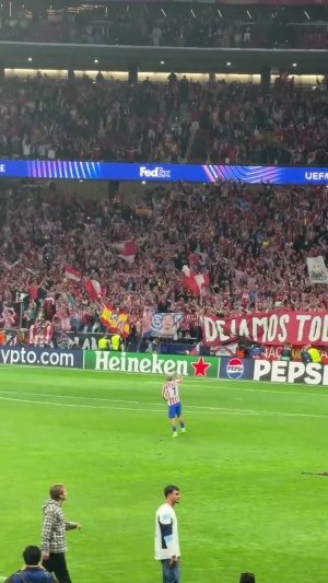 体育资讯04月15日讯 马竞1-2、总比分3-2淘汰巴萨晋级四强,格列兹曼赛后独自一人与马竞球迷激情庆祝。