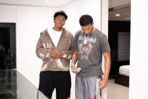 体育资讯5月1日讯 奇才球员朱利安·里斯更新社媒,晒出了和鹈鹕新秀德里克·奎因一同度假的照片。